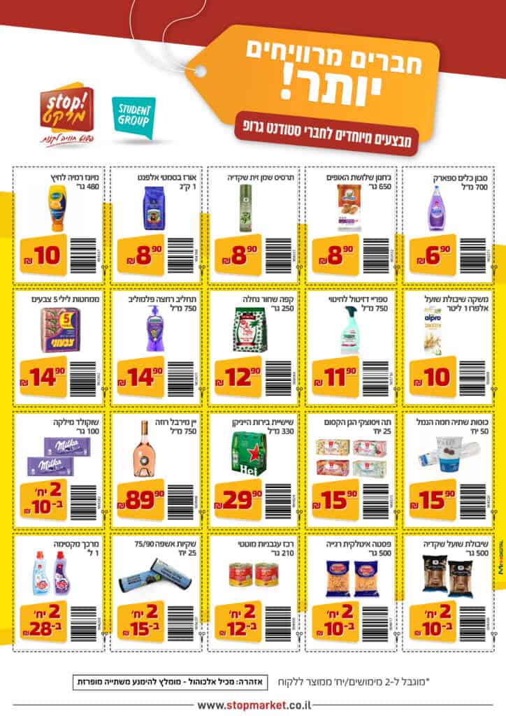 רשת סטופמרקט מפנקת את חברי סטודנט גרופ בקופונים והנחות למוצרים נבחרים